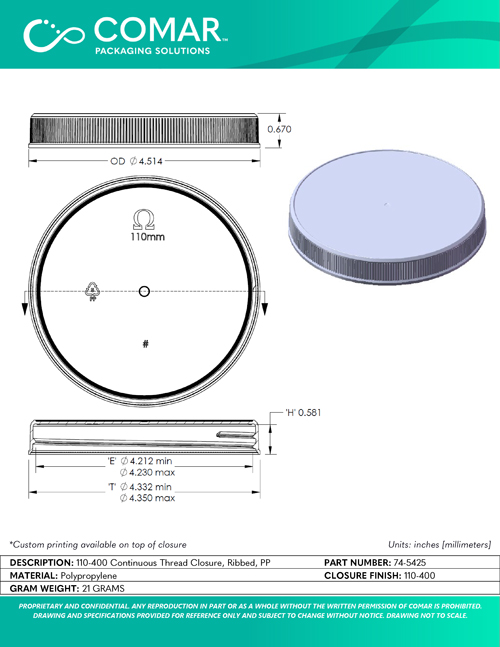 Stocked in White and Black, Lined (PE Foam) or Unlined. Can be produced in standard or custom colors and paired with a variety of liners including foam, pressure-sensitive, or heat induction.