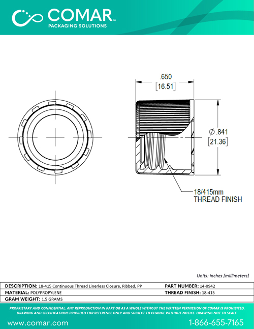 0.65 in / 16.51 mm