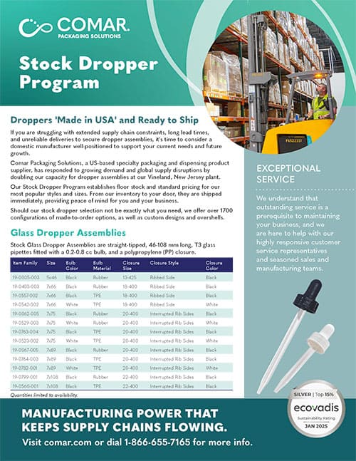We offer a variety of stock and made-to-order primary packaging and dispensing solutions with in-house capabilities to design something new.