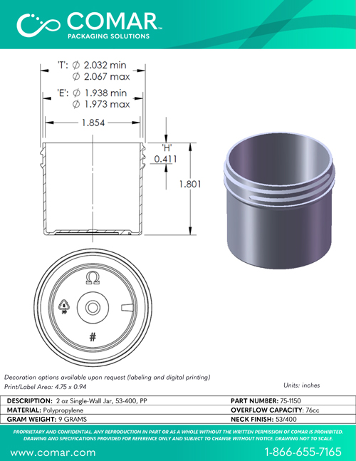 Stocked in White and Clarified. Can be produced in custom colors. Can be manufactured with post-consumer recycled content (PP PCR) up to 100%. Decoration options available upon request.
