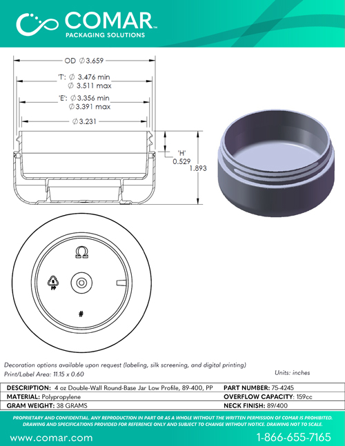 Can be produced in custom colors. Can be manufactured with post-consumer recycled content (PP PCR) up to 100%. Decoration options available upon request.