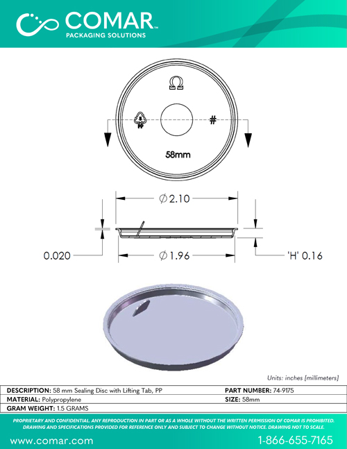 74-9175 Comar 58 mm Sealing Disc with Lifting Tab, PP