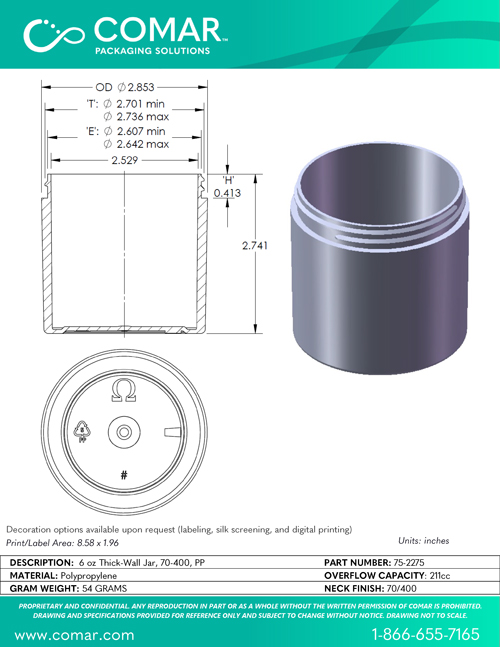 Can be produced in White, Clarified, and custom colors. Can be manufactured with post-consumer recycled content (PP PCR) up to 100%. Decoration options available upon request.