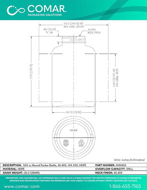 Standard color is White with custom colors upon request. Can be produced with post-consumer recycled content (HDPE PCR) up to 100%.