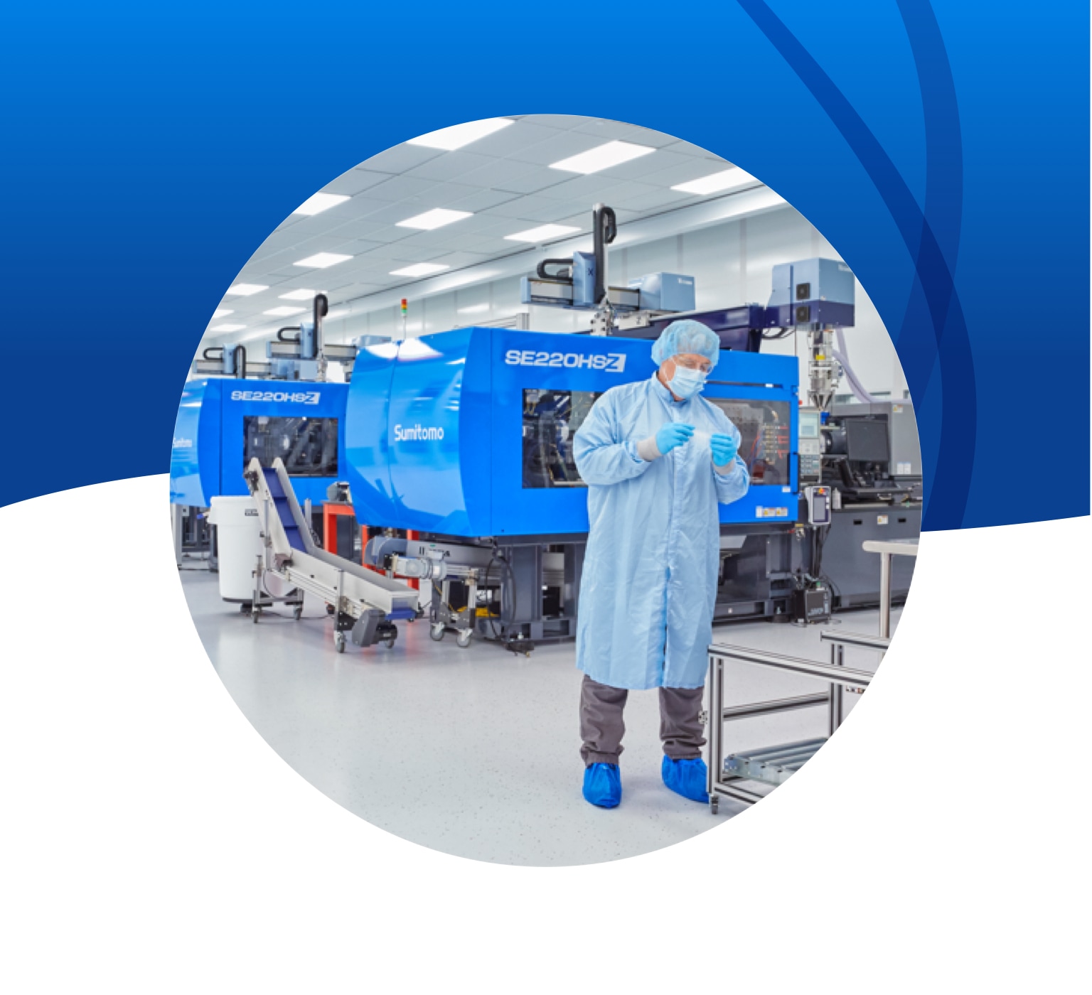 cleanroom technician working on medical manufacturing machine